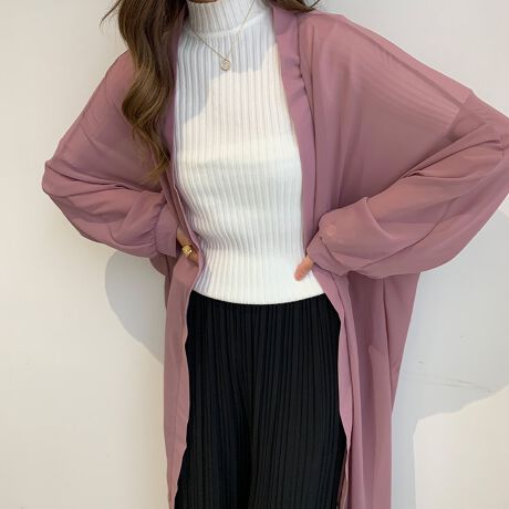 オープンカラーでリラックス感のあるシアーロングシャツ。ノーカラーシャツで首元をスッキリと見せ、体のラインを拾いすぎず、程よくゆとりのあるシルエットです。柔らかく落ち感のある素材シアー感が今っぽい雰囲気に仕上げてくれます。さらっと羽織るだけでフェミニンな雰囲気にしてくれる一枚。■注意事項・お使いのモニターや端末により、質感・色合いが実際の商品と異なって見える場合がございます。・表記サイズは測り方によって1〜2cmの誤差が生じる場合がございます。ご了承くださいませ。