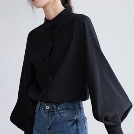 大人気!今季マストアイテム。ボリュームスリーブノーカラーシャツ。
