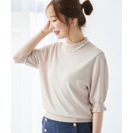 首元と袖口の小さなフリルが程よい甘さのあるニットプルオーバー。