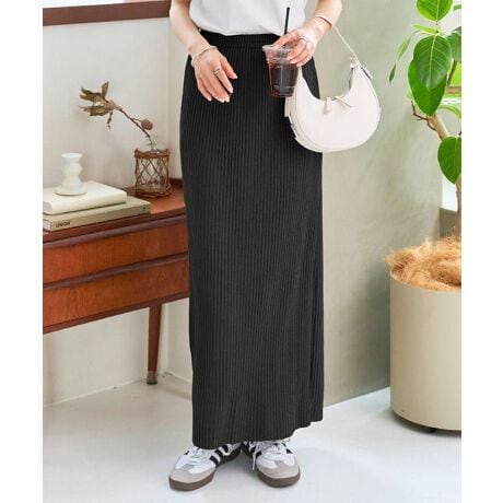 凹凸のあるリブ素材がサラッと快適なタイトスカート。