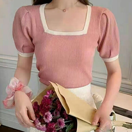 スクエアネックパイピングトップス