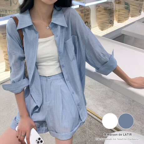 ロング丈の長袖シャツとワイドなハーフパンツのセットアップ。ゆったりしたシルエットと淡いカラーが涼し気で、秋冬らしいアイテムです♪インナーはカジュアルなTシャツやタンクトップを合わせて、ラフに着るのがオススメ◎それぞれ単体でも着まわしやすく、様々なスタイルを楽しめるアイテムです。■注意事項・お使いのモニターや端末により、質感・色合いが実際の商品と異なって見える場合がございます。・表記サイズは測り方によって1〜2cmの誤差が生じる場合がございます。ご了承くださいませ。