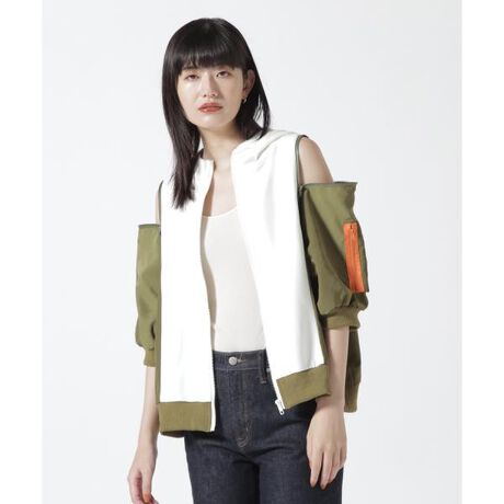 risleyらしい、スウェットとMA1のアームがドッキングした半袖のドルマンパーカーです。肩のzipをあけてオフショル風にも着ていただけます。Risley/リズレー国内やヨーロッパでのバイイングを豊富に経験したクリエイター達によるこだわりのある視点で、もっとこうしたい、ああしたいという思いが膨らみ、それらを形にしていく事でリアルニーズに応えた商品を追求し提案。ありそうでなかった洗練されたリアルクローズブランド。