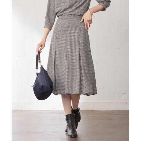 フィット&フレアの上品シルエットが魅力、シワが目立ちにくいタックスカート