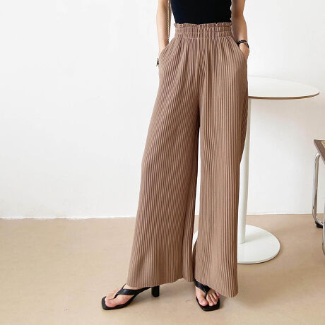 リピ続出!春プリーツリブワイドパンツ。形状記憶でシワしらず。ボトムス ハイウエスト ストレッチ