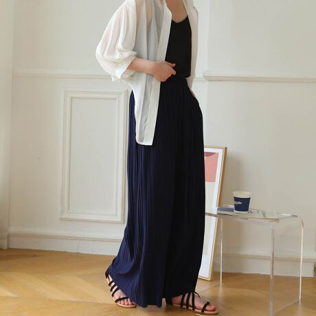 ウエストゴムでストレスフリーな着心地を実現し、長時間穿いていても疲れにくく、リラックスタイムを満喫できます。