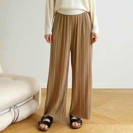 春も快適にサラッと穿ける。上品美脚ストレートプリーツパンツ ストレッチ