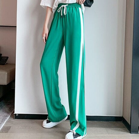 ラインデザインが施されたスポーティなモップパンツ。ハイウエストで綺麗なストレートシルエットなので、脚を綺麗に見せてくれる一着です。ウエストはゴム仕様で楽に着られるので、お出かけもにぴったり◎ミニ丈のTシャツやタンクトップと合わせてすっきりとまとめても、ゆったりめのTシャツをインしてもオシャレなスポーティコーデが完成します♪■注意事項・お使いのモニターや端末により、質感・色合いが実際の商品と異なって見える場合がございます。・表記サイズは測り方によって1〜2cmの誤差が生じる場合がございます。ご了承くださいませ。