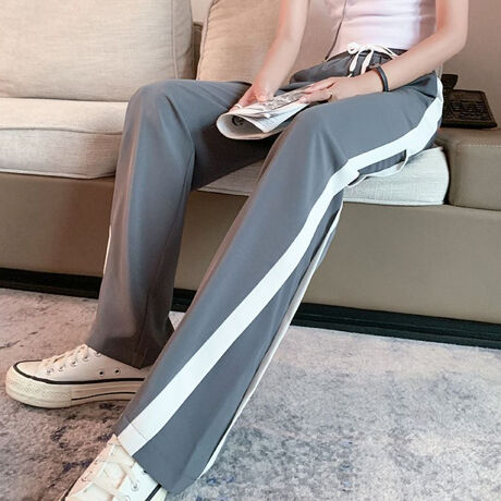 ラインデザインが施されたスポーティなモップパンツ。ハイウエストで綺麗なストレートシルエットなので、脚を綺麗に見せてくれる一着です。ウエストはゴム仕様で楽に着られるので、お出かけもにぴったり◎ミニ丈のTシャツやタンクトップと合わせてすっきりとまとめても、ゆったりめのTシャツをインしてもオシャレなスポーティコーデが完成します♪■注意事項・お使いのモニターや端末により、質感・色合いが実際の商品と異なって見える場合がございます。・表記サイズは測り方によって1〜2cmの誤差が生じる場合がございます。ご了承くださいませ。