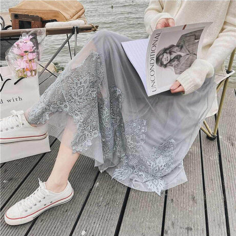 アンティークレースが大人可愛いフレアスカート。ふんわりとしたレースと、裾にデザインされた刺繍がエレガントで女性らしい印象を与えてくれます。ウエストはゴムになっているのでラクに履けて嬉しい◎ニットと合わせてガーリーに、ジャケットと合わせて大人っぽく!様々な種類のコーデを楽しめるスカート◎もちろん、足元もスニーカーやローファーなどいろいろなテイストの靴と相性が良いので、何回履いても飽きないところが魅力のスカートです。■注意事項・お使いのモニターや端末により、質感・色合いが実際の商品と異なって見える場合がございます。・表記サイズは測り方によって1〜2cmの誤差が生じる場合がございます。ご了承くださいませ。