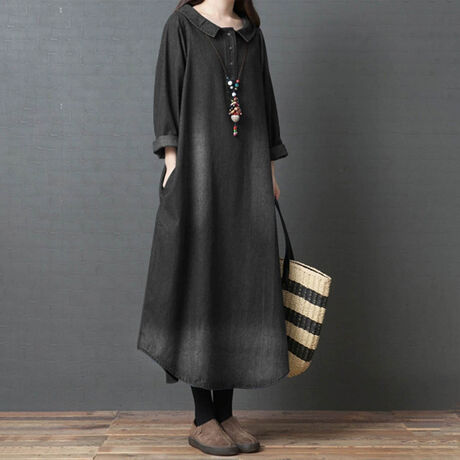ゆったりし今旬のオーバーサイズシルエットのデニムワンピース