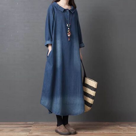 ゆったりし今旬のオーバーサイズシルエットのデニムワンピース