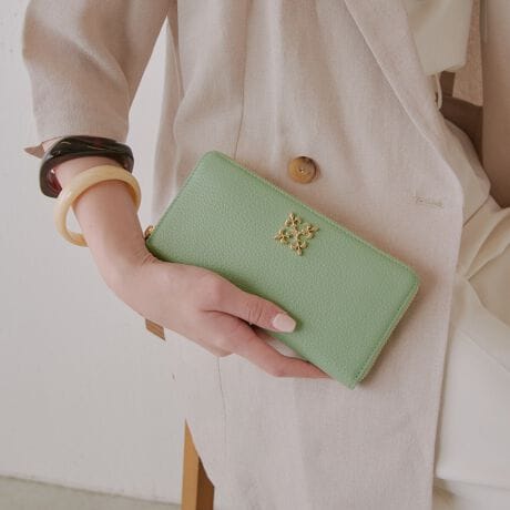 russetでロングセラーの長財布は、スムーズに開閉できるラウンドジップ式。