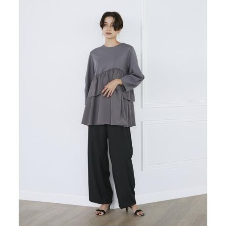 タック入りのワイドパンツはハイウエストのフルレングスで美脚&脚長効果な一本。もたつかない程よい太さと真っすぐに降ろしたセンタープレスで、女性らしいメリハリスタイルを作ります。バックゴムのラクチンウエストはベルトループ付きで、今年らしくウエストマークの着こなしもおすすめ。シンプルだからこそニュアンスカラーと織柄が際立つおすすめのアイテムです。・裏地なし ・ポケットあり ・ウエスト後ろ部分ゴム仕様・水洗い可■素材■クラシックなメランジ見えのシャークスキン柄で、ソフトな風合も特徴。ブラックは無地に見えても、濃淡のある奥深い色合いに仕上げています。