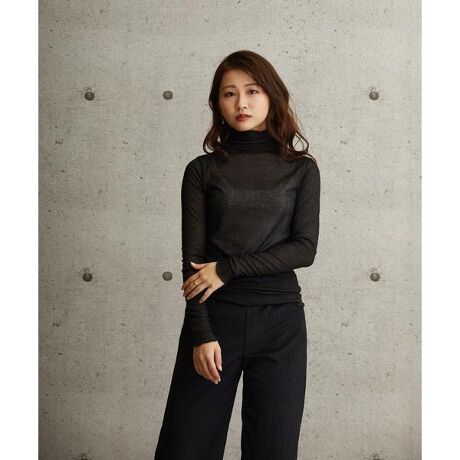 courage/クラージュ/2WAY シアー素材ハイネック ロンT