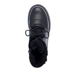 Dリングアイレットの編み上げレースアップ。厚底のアウトソールの組み合わせがアウトドアテイスト溢れる1足。防水加工を施した皮革にムートンのライニング、着脱のしやすいサイドファスナーで機能性も充実。