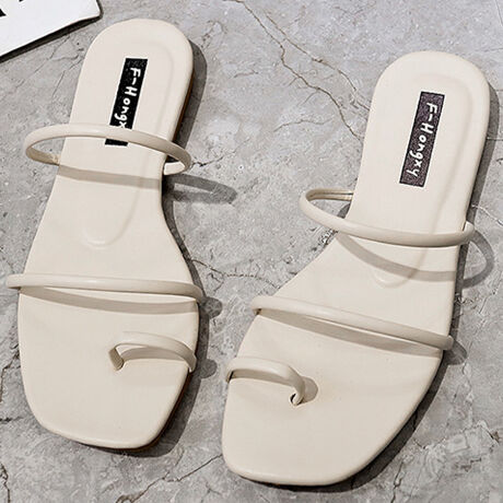 細ストラップがヌーディーな印象に仕上げたフラットサンダル