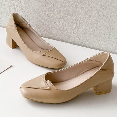 オールシーズン可愛く履けるデザインスクエアチャンキーヒールパンプス【※小さめのつくり/普段より+1サ