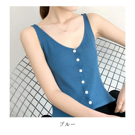 シングルユースでも、インナーとしても活躍してくれるタンクトップ。<br>カジュアル過ぎないボタンが女性らしさをプラスしてくれ、トレンド感のあるデザインに。<br>程よくボディラインにフィットするので、カジュアルすぎずフェミニンな印象のコーデも楽しめますね。<br><br><br>■注意事項<br>・お使いのモニターや端末により、質感・色合いが実際の商品と異なって見える場合がございます。<br>・表記サイズは測り方によって1?2cmの誤差が生じる場合がございます。ご了承くださいませ。<br>