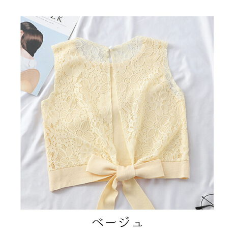 フロントとバックで違う表情が楽しめるトップス。<br>バックの繊細なレースからチラ見えする素肌は、大人女子力アップ。ボトルネックにノースリーブのデザインでヘルシーさもアピール。<br>今旬のワイドパンツでフェミニンにショートデニムでカジュアルに。ボトムスを選ばず女らしいコーディネートが楽しめます。<br>