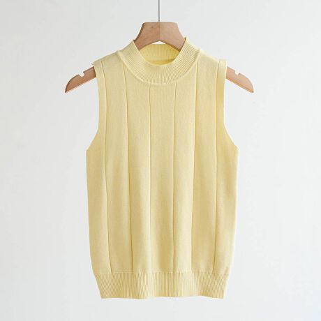 《9色展開》一枚でも重ね着でも!季節の変わり目に頼れる、上品モックネックリブニットノースリーブ