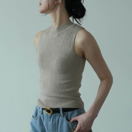 上品に着こなせる大人なハイネックニットハイネックが上品な雰囲気を醸すノースリーブニットです。女性らしさが際立つハイネックで、すっきり華奢見えし、もたつかず優しく体にフィットするこだわりのシルエットが絶妙のバランスに。シンプルなデザインで1枚はもちろんインナーとしても活躍する万能トップスです。オンオフ使えるサマーニットは冬のスタイリングに◎■注意事項・お使いのモニターや端末により、質感・色合いが実際の商品と異なって見える場合がございます。・表記サイズは測り方によって1〜2cmの誤差が生じる場合がございます。ご了承くださいませ。