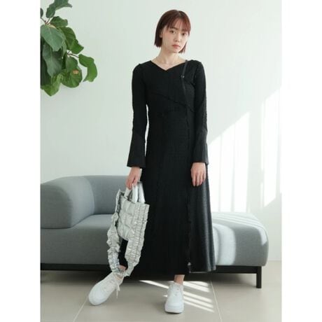 アシンメトリーなデザイン切り替えでモードなエッセンスをプラスしたカットワンピース。