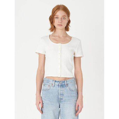 レイチェル・トップは、現代的でありながら、トレンドの90年代の雰囲気を楽しめるシルエットにデザインされました。肌ざわりの良いセーターのようなニット製で前ボタンがポイントです。どんなジーンズとも相性抜群の一枚で色違いでほしくなる銘品です。model:173cm B86 W59 H87 着用サイズ:M※「(R)」のみが表記されたレッドタブは、LEVI'S(R)の文字が含まれるレッドタブと同様に製品不具合ではありません。不良品ではございませんので、交換・返品をお受けできません。また、タブの種類もお選びいただけませんので、予めご了承くださいませ。