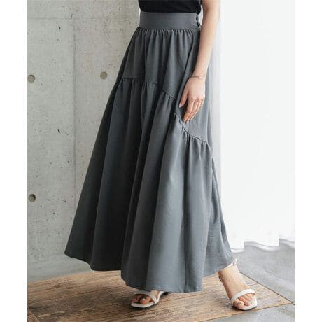 甘すぎない大人のフェミニンスカート。控え目なギャザーがふんわり柔らかな雰囲気漂う一枚。