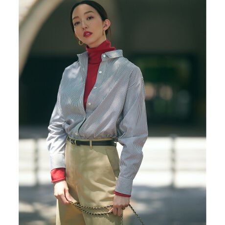 ベーシックなデザインの上質なシャツ。メンズライクなつくりですが、身幅のすっきりとしたラインがエレガントで女性らしい雰囲気を引き出してくれます。肩幅には少しゆとりを持たせているので着心地も抜群。一枚あるとロングシーズン活躍する、ワンランク上のベーシックシャツです。シンプルにデニム合わせはもちろん、タイトスートやワイドボトムスとも相性◎。暖かい気温の時期は一枚でサラッと、寒い時期になったらニットのインナーとしてもオススメです。カラーは、定番のホワイト(#001)、爽やかなライトグレー(#003)の無地2色と、上品な甘さのピンクストライプ(#112)、カジュアルにも着られるダークブラウンストライプ(#135)、アクセントカラーにもなるグリーンストライプ(#160)、オンオフ使えるサックスブルーストライプ(#273)の計6色展開です。