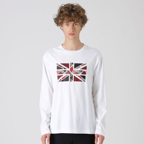 イギリスの国旗「ユニオンジャック」をプリントであしらったグラフィックTシャツ。ブランドアイコンでもあるクレストブリッジチェック柄とロゴを掛け合わせたデザインにより、ブラックレーベルならではの遊び心あるグラフィックになっています。ややゆったりとしたリラックスシルエットで一枚でも十分サマになるTシャツです。