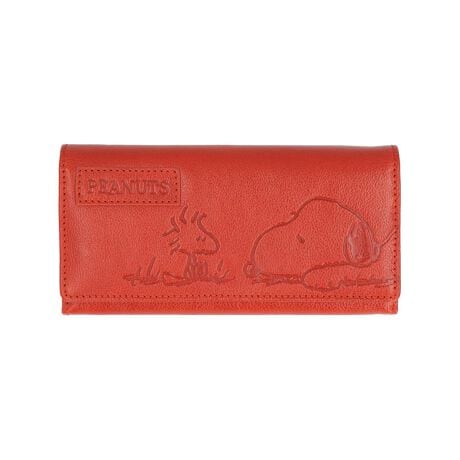 PEANUTSの世界観あふれるデザイン!本革のソフトな手触りが心地よい「PEANUTS FACE 長財布」が新登場。【大人の魅力が引き立つ素材感】リッチなシボ感とアンティークな風合いが大人の魅力を引き立てる!上質な天然皮革を贅沢に使用した、可愛くて収納力抜群のロングウォレット。【使いやすいフラップタイプ】スナップボタンでワンタッチ開閉ができる、シンプルなフラップタイプ。内側のポケットがジャバラ状にパッと広がり、お札や小銭の取り出しがスマートに。【たっぷり入る3ルーム構造】中央のファスナー式コインポケットを仕切りに、前後に2つ札入れポケットを設けたシンプルな3ルーム構造。紙幣を額面ごとに分けたり、レシートの整理に便利。【パッと見やすいコインポケット】L字型ファスナーで開くコインポケットは、小銭がひと目で確認しやすい2層式。コンビニのレジでも慌てずに支払いがスムーズ!【出番の多いカードの定位置に】コインスペース内部、仕切りの側面にもフリーポケットが1つあるので、頻繁に使用するクレジットカードの収納はこちらが便利!【大容量カードポケット】2つの札入れスペース内部とフラップ裏側に、カードポケット×14枚分、フリーポケット×2ヶ所を装備し、お財布の中でかさばりがちなカード類もすっきり整理。【お財布ごとタッチ&スルー】背面側のフリーポケットに交通系ICカードを忍ばせて、お財布ごとタッチすれば毎日の通勤通学がらくらく快適。【使うほどに深まる味わい】使い込むごとに味わい増していく、ナチュラルな本革素材ならではの経年変化が楽しめるのも魅力のひとつ。【世界中で愛されるデザイン】お財布を手に取るたび、誰もがほっこり笑顔になる♪芝生に寝そべって顔を寄せ合うスヌーピー&ウッドストックのキュートなデザイン。