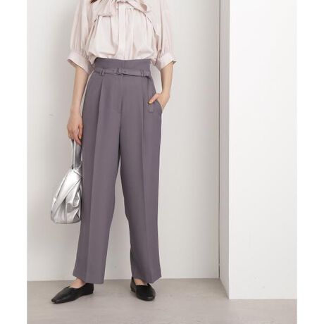 センタープレスが施されたハンサムな表情のストレートパンツは、ハイウエスト仕様で脚長効果が期待できる1本。共布の細ベルトでウエストマークをすれば、よりスタイルアップが叶います。コンパクトトップス、Tシャツ、シャツブラウス、ニットなど、どんなトップス合わせも決まり、ONにもOFFにも着回しがきく万能なアイテム。