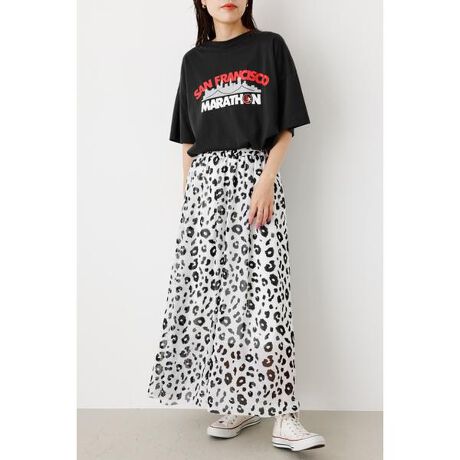 秋を先取りできるアニマル柄のスカート。落ち感のある素材を使用しているので、合わせるトップスを選ばす、1枚でおしゃれ感が出るアイテム。足元はサンダルや、これからの時期はブーツなども合わせられる丈感になっています。秋まで使える万能ボトムです。
