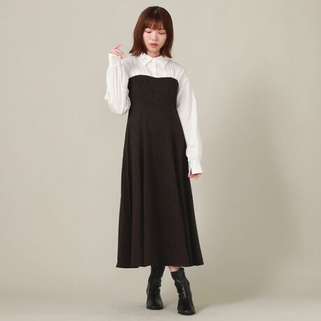 シャツをレイヤードしたようなデザインが特徴のワンピース。