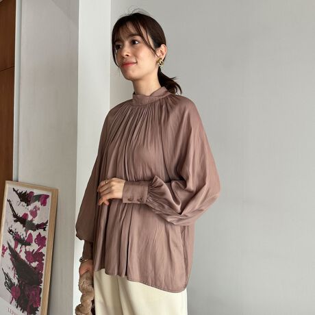 ・首元から細かくはいったギャザーでシルエットに動きがでます