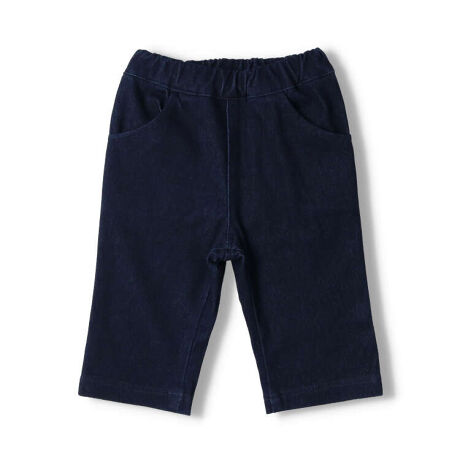 デニム見えしても、柔らかカットデニム素材で動きやすいハーフパンツ、ズボン。膝が隠れる6分丈。シンプルでベーシックなデザインで男の子も女の子もユニセックスで着られるアイテム。【アイテム】シンプル ベーシック 無地 カジュアル お洒落 オシャレ かっこいい かわいい 可愛い 普段着 お外着 お外遊び着 デイリーウェア お出かけ着 ハーフパンツ 短パン 半パン ボトムス 子ども こども 男児 男の子 ボーイズ キッズ ベビーサイズ トドラーサイズ 幼稚園 保育園 小学校 通園 通学 小学生 2023年夏物新作 丸高衣料 ネイビー コン 紺色 女の子 女児 ガールズ 男女兼用 クレセント