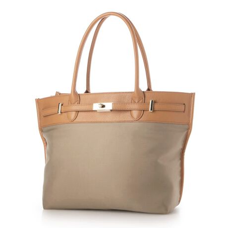 ナイロンと牛革を組み合わせたキレイめカジュアルに合わせやすい雰囲気のトートバッグ。
