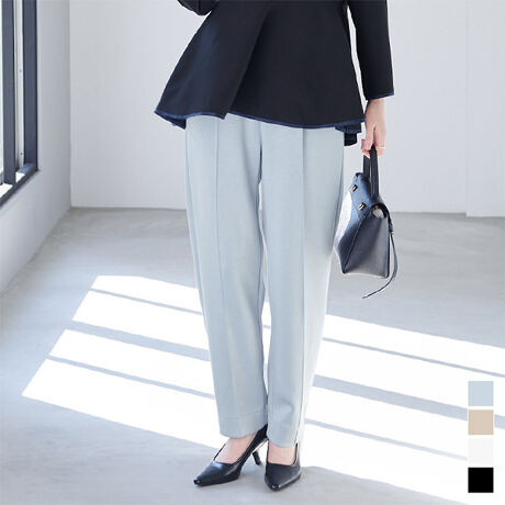 センターに入ったピンタックがきれいなラインを作るコクーンパンツ。