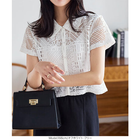 女性らしさ引き立つ総レースが目を惹くレースシャツ。