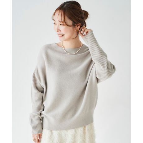 ゆったりした身頃に対して、スッキリ目に仕上げたリブ袖とのバランスが個性的。