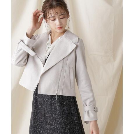 ロングシーズン着られる便利なライダースジャケット。ハードすぎない素材と優しい色使いがポイント。やや短めの着丈なので、ウエスト位置を高く見せてスタイルアップが狙えます。スカートにもワンピースにも合わせられるので、デイリースタイルのアウターに重宝します。※撮影時照明の関係により、色味が違って見える場合がございます。またパソコン・スマートフォンなどの環境により、若干製品と画像のカラーが異なる場合もございます。予めご了承ください。商品の色味は、商品単品画像をご参照下さい。※商品画像はサンプルのため、色味やサイズ等の仕様に変更がある場合がございますので、予めご了承ください。