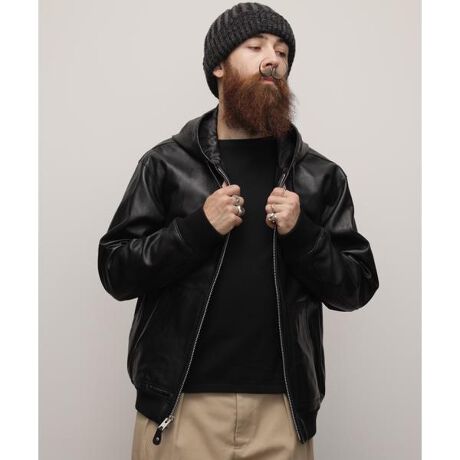 LEATHER FULLZIP PARKA/レザー フルジップ パーカー