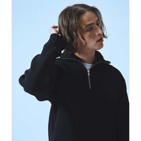 定番のドライバーズニットをハーフジップにすることでトレンド感ある印象にブラッシュアップ。