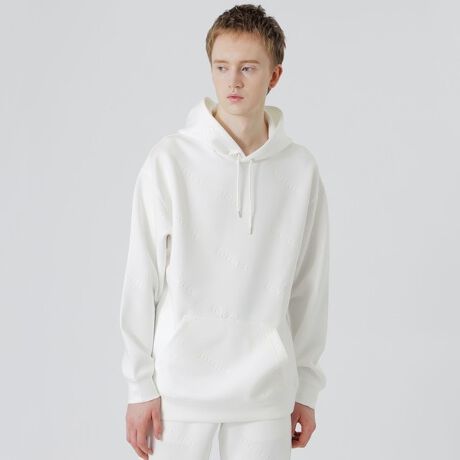 LOVELESSのロゴをへこみエンボスで表現したフーディ
