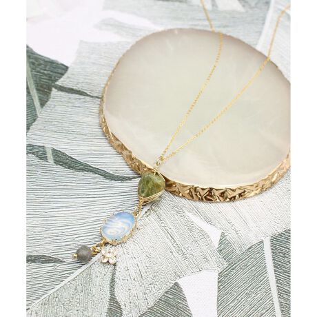 【8月誕生石】ペリドット×ムーンストーンネックレス(ゴールドフィルド)