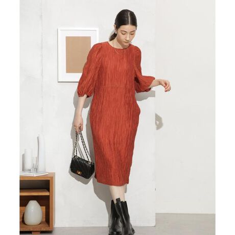 デイリーからオケージョンシーンまで頼れる華やかなワンピース。二の腕カバーを叶えるボリュームスリーブに、腰位置高めのウエストがスタイルアップを叶えるデザイン。背中のパール釦が女性らしいアクセントを演出し、シンプルながらも品良く様になるひと品です。