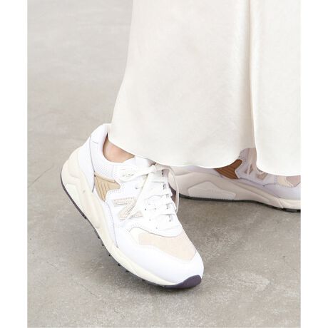 上質な表情を醸し出す、フルグレインレザー、シンセティックレザー、メッシュアッパーを、ホワイトを基調にした落ち着きのある配色で仕上げています。