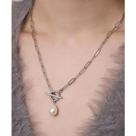 ●大きめなバロックパールがワンポイントになっているチェーンネックレス。