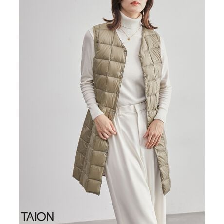 TAIONの定番キルティングインナーダウンは、ジャケットやコートの下に着るのはもちろん、Tシャツ・シャツ・パーカーなどの上にも気軽に羽織れる、軽くて暖かく着回しやすいデザインが特徴です。